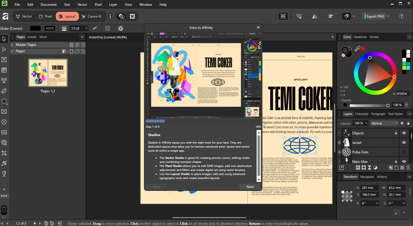 The next part is up to you. If you are a novice to Affinity (like me), you’re going to face a learning curve but it’s so worth it. But, that’s okay. You also get a super helpful AI assistant called Ritson who slays at helping you figure out the parts where you are stuck. And you will be stuck, prepare for that, there’s just a lot of options and it can be bewildering at first.