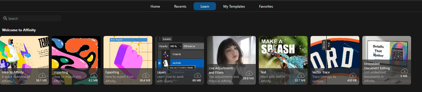 Click the Intro to Affinity (it takes a moment or two to load the workspace so don’t keep clicking the tutorial like I did because then you get a ton of them loded all at once - I think I had twelve ha)